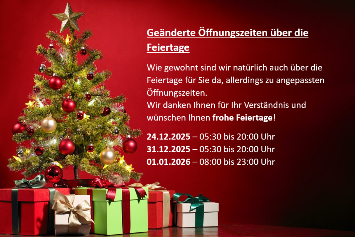 Geänderte Öffnungszeiten in der Weihnachtszeit